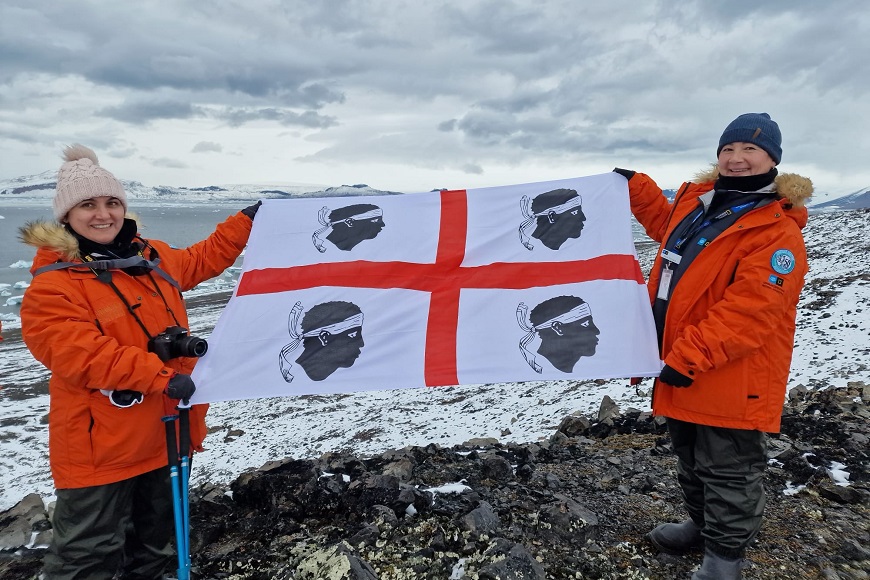 Duas sorrastras originàrias de Aristanis, Paola Pesci e Sara Ferrara, sunt imbàtidas finas a Antàrtide pro connòschere mègius pinguinos e focas, e nch’ant leadu cun issas sa bandera de sos Bator Moros.