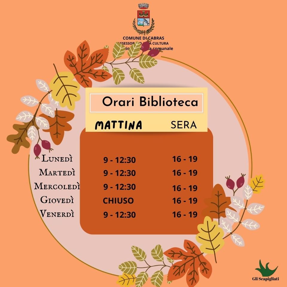 In s'àmbitu de is manifestatzionis de “Estate Cabrarese 2024” sa Biblioteca comunali cuncordat unas cantu presentadas de lìburus a partiri de su 14 de su mesi de argiolas finas a su 4 de austu.