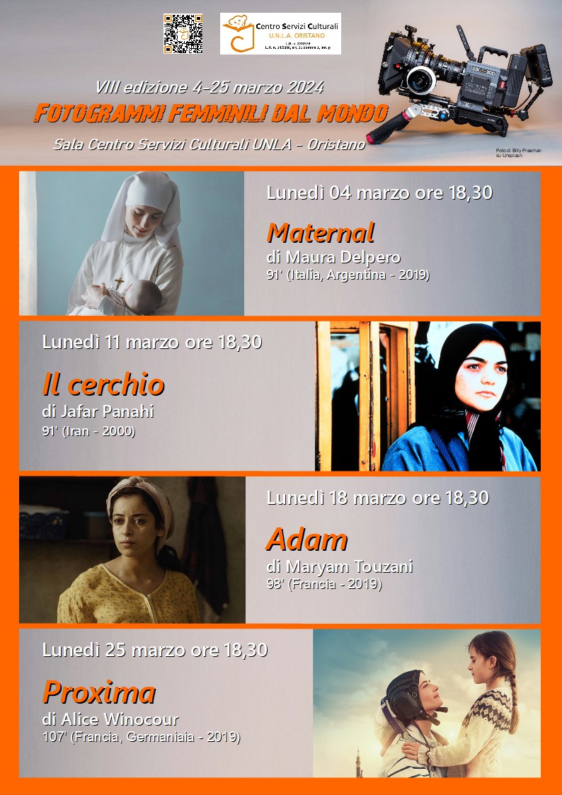 1) Lunis 4 de martzu “Maternal” de Maura Delpero, de 91 minùtus (Itàlia, Argentina – 2019), est ambientau in unu tzentru religiosu ìtalu-argentinu chi acollit mammas bagadias.