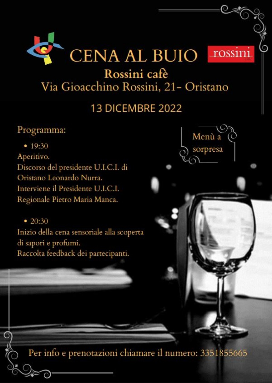 Màndigos a sorpresa, de mandigare in una chena a s’oscuru. Est su chi proponet sa setzione aristanesa de s’Unione italiana Tzegos e Ipovedentes pro sa festa de Santa Lughia, patrona de sa vista.