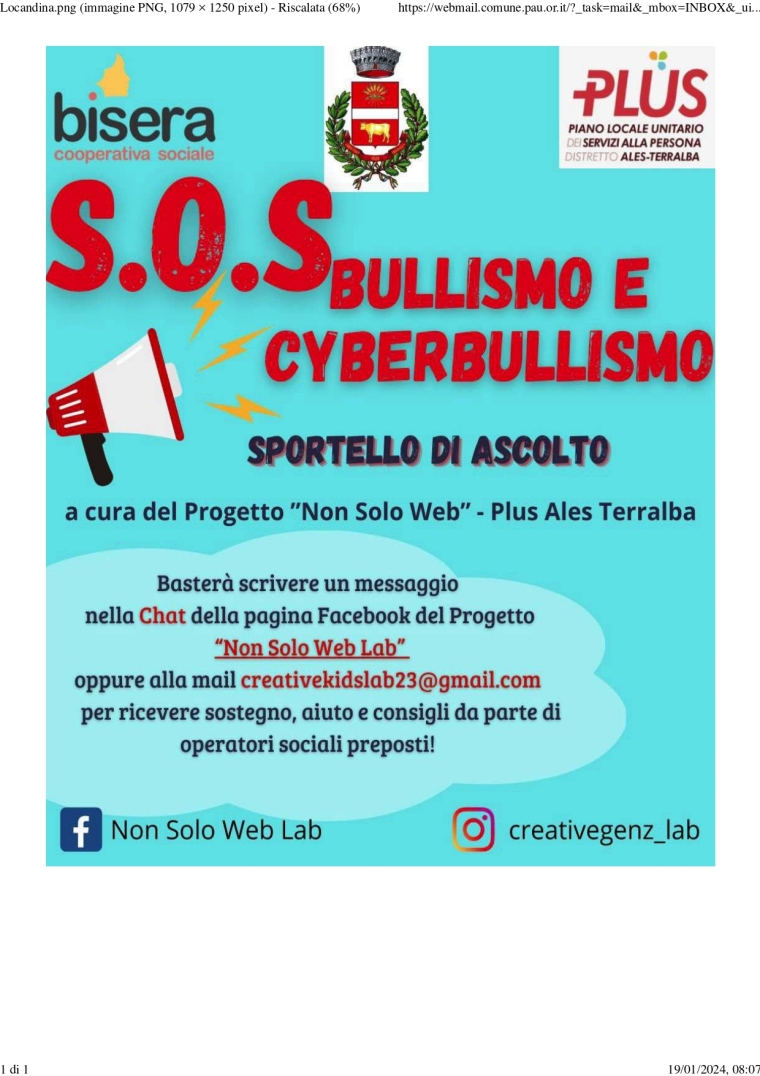 Su Plus de Abas – Terraba in s’àmbitu de su progetu “Non solo web” at cuncordau in is mesis passaus unus cantu atòbius po promovi e cumbati su fenòmenu de su bullismu e cyber - bullismu e po imparai a imperai internet a manera abbista. Immoi est stètiu finas apariciau unu portalitu virtuali “SOS BULLISMO e CYBERBULLISMO” chi agatais in sa pàgina facebook de su progetu “Non Solo Web” (https://www.facebook.com/NonSoloWebLab) .