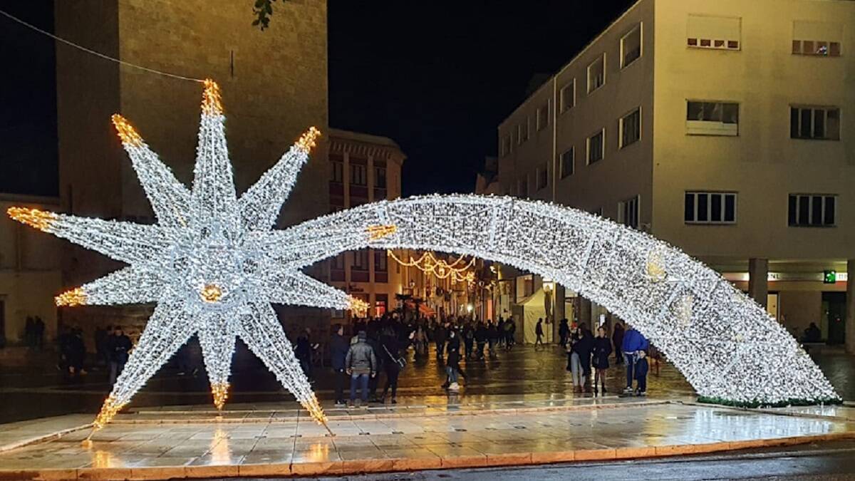 In pratza Roma, in Aristanis, ocannu puru torrant a allumare s’isteddu. De s’ispesa si nd’at a incarrigare s’amministratzione comunale, chi non cheret rinuntziare a sas lughes de Nadale nointames sas bulletas incaridas meda. In sos meses colados su Comune nd’aiat fatu istudare sos faros chi daiant lughe a sos monumentos printzipales de Aristanis (e in mesu de custos sa màgine de Lionora), pro dare unu signale de rispàrmiu.