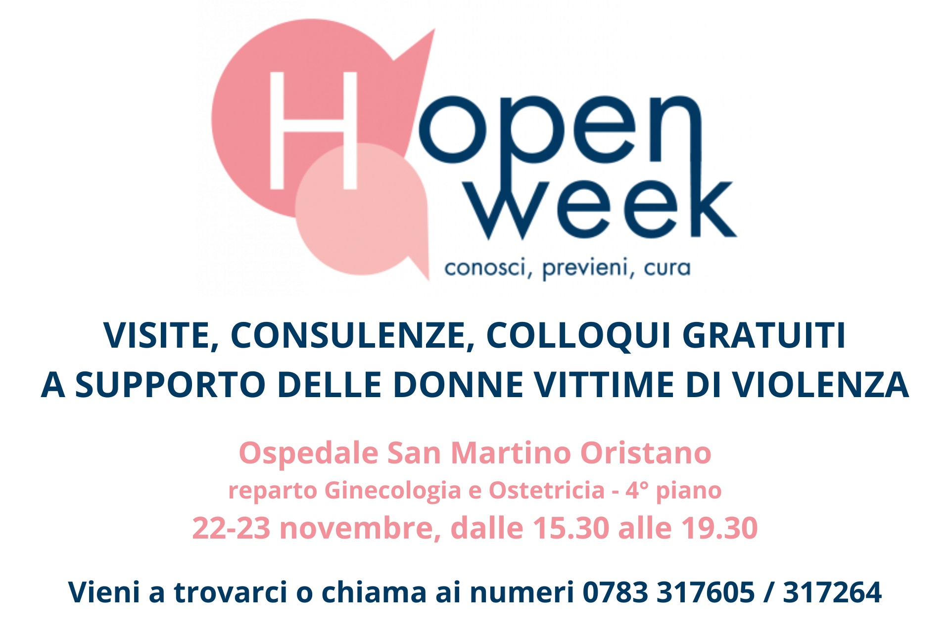 S’ispidale Santu Martinu de Aristanis leat parte a sa (H)-Chida aberta contra de sa violèntzia a sas fèminas (Open week contro la violenza sulle donne) organizada in totu Itàlia dae su 21 a su 26 de santandria dae sa Fundatzione Onda (Osservatòriu Natzionale de sa salude de sa fèmina e de gènere).