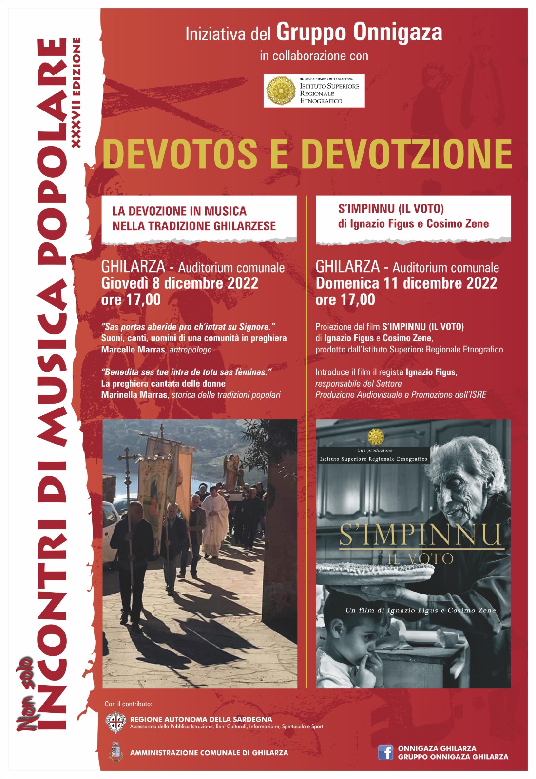 Domìniga, s’ 11 de nadale 2022, in collaboratzione cun s’Istitutu Superiore Regionale Etnogràficu (ISRE), at a èssere projetadu su film S'Impinnu (Il voto) de Ignazio Figus e Cosimo Zene.
