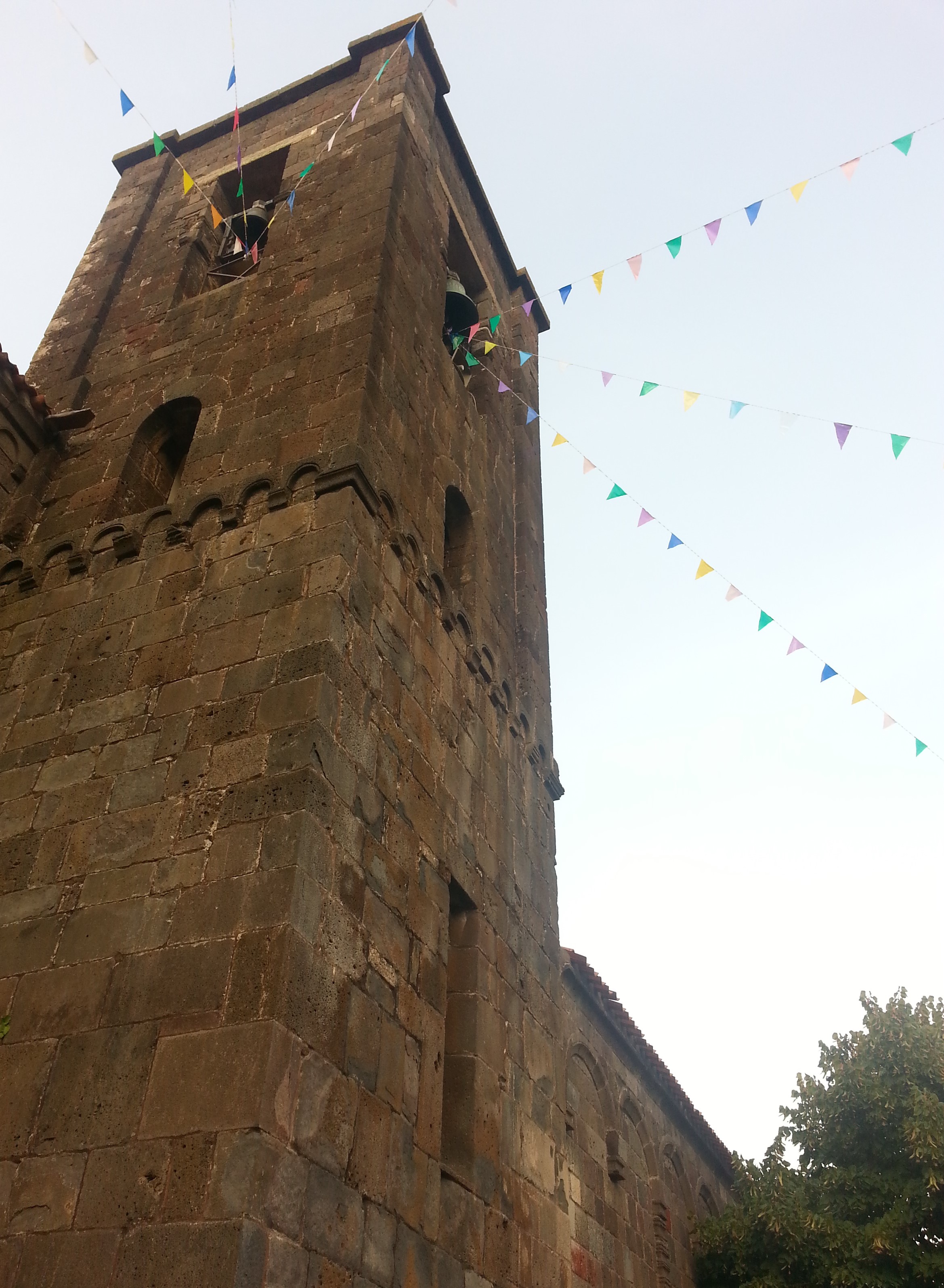 S’una acanta de s’àtera bi sunt duas crèsias dedicadas a Nostra Sennora: una cresiedda pitica pitica paleocristiana, fortzis est sa crèsia mariana prus antiga de Sardigna (VI-VII séc.), chi est istada fraigada in pitzu de unu fràigu termale de època romana e una crèsia manna romànica fraigada in època giudicale, cando bi fiant sos camaldolesos, cunsacrada in su 1147, e ismanniada in sos sèculos a pustis. Ischimus dae su chi est iscritu in su Condaghe de Santa Maria de Bonàrcadu, ca prus o mancu in su 1110 Costantine I de Lacon-Gunale, Giùighe de Arborea chi at fatu fraigare sa crèsia manna, aiat fatu fraigare unu monasteru camaldolesu pro sos religiosos chi si depiant curare de sa crèsia. Custu monasteru teniat crèsias, terras, tzeracos e bestiàmene meda e fiat ligadu a s’abatzia pisana de Santu Zeno.