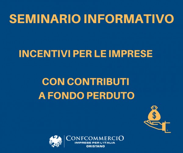 Confcommercio de Aristanis organizat pro oe, giòbia 28 de trìulas 2022 a sas 3 e mesa (h 15,30) in sa sede sua in carrera Sebastiano Mele n° 7G in Aristanis, unu seminàriu pro faeddare de sos agiudos a sas impresas de su cummèrtziu e de sa distributzione mentovadas in sa Lege Regionale n° 3 de su 9 de martzu 2022 “Dispositziones atuativas pro cuntzèdere contributos in contu interessos e in contu capitale pro sas operatziones de crèditu agevoladu a sas atividades cummertziales”.