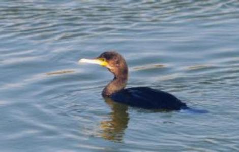 Su corbu marinu (Phalacrocorax carbo, ma in Sardigna nci at de prus sa sutaspècia sinensis) est unu pilloni mannu de àcua (prus o mancu 90 cm), a colori nieddutzu e a bicu grogànciu, a canna, acancarronau in pitzu. Sa barba e is trempas funt a pinna fini bianca, asuba de sa conca portat unas cantu pinnas biancas. In s'istadi, candu est mannu de edadi, portat una mància bianca me in is còscias e me in partis bàscias de is fiancus mentras candu est giòvunu est a colori prus craru, chi tirat a su trinu, a gùturu e a brenti bianca. Candu si firmat in s'arroca abarrant stantàrgiu beni e a bortas a alas abertas.