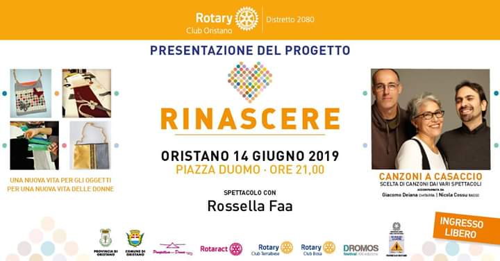 A Oristano la presentazione del progetto Rinascere 14/05/2019 - Tematiche: Lo spettacolo con Rossella Faa ad Oristano, in piazza Duomo, venerdì 14 giugno alle ore 21. Organizzazione Rotary Club Oristano, con il patrocinio della Consigliera di parità e della Provincia di Oristano Invia Stampa Condividi su: Facebook Twitter Linkedin Google+