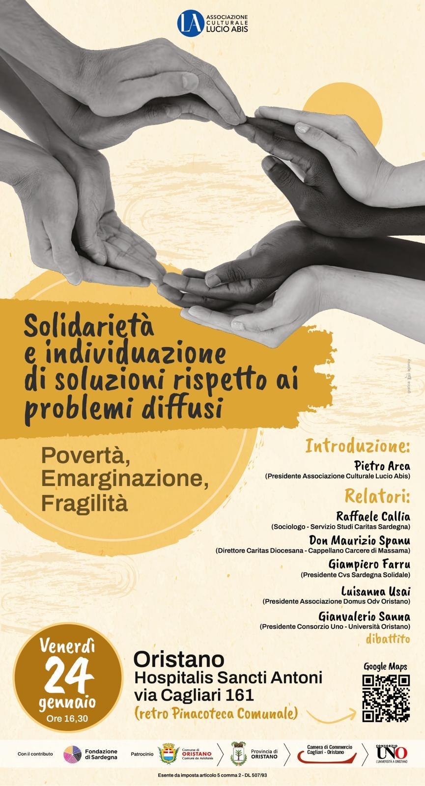 L’Associazione culturale intitolata alle opere e alla memoria del Senatore Lucio Abis ha organizzato per venerdì 24 gennaio, ore 16,30 nei locali dell’Hospitalis Sancti Antoni, via Cagliari 161 ad Oristano, il convegno sui temi della solidarietà, del servizio verso gli ultimi e della grande opera delle organizzazioni locali e regionali del volontariato